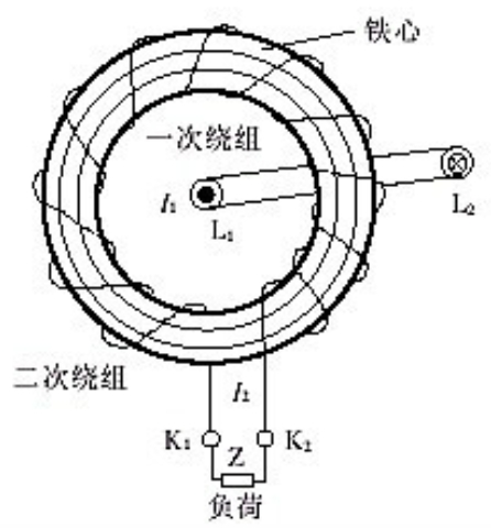 穿心式電流互感器其自身結構不設一次繞組,載流(負荷電流)導線由L1至L2穿過由硅鋼片搟卷制成的圓形(或其他形狀)鐵心起一次繞組作用。二次繞組直接均勻地纏繞在圓形鐵心上,與表面、繼電器、變送器等電流線圈的二次負荷串聯構成閉合回路,由于穿心式電流互感器不設一次繞組,其變比根據一次繞組穿過互感器鐵心中的匝數承認,穿心匝數越多,變比越??;反之,穿心匝數越少,變比越大,額定電流比I1/n:式中I1——穿心一匝時一次額定電流;n——穿心匝數。